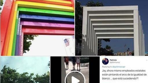 En las últimas horas se ha denunciado que “empleados estatales” pintaron de blanco el pórtico de la igualdad, homenaje a la lucha por los derechos de la comunidad LGBTTQ en Puerto Rico. Sin embargo, aún no se sabe, de manera oficial, si, en efecto, fueron funcionarios públicos los que llevaron a cabo esto.