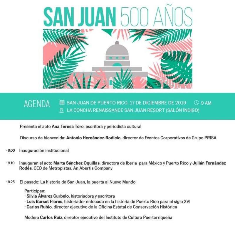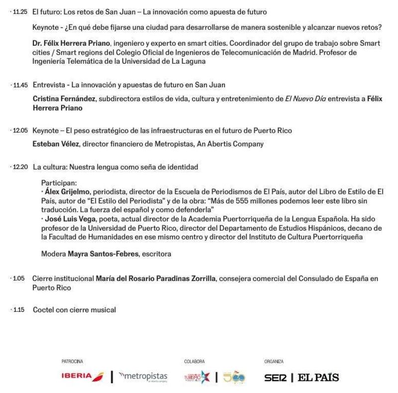 El diario español El País y la Cadena SER presentan el foro San Juan 500 años: La puerta al nuevo mundo, en el cual se pasará revista sobre la historia de la ciudad, su presente económico y sociocultural y su prometedor futuro ligado a la tecnología, con el idioma español como seña de identidad.