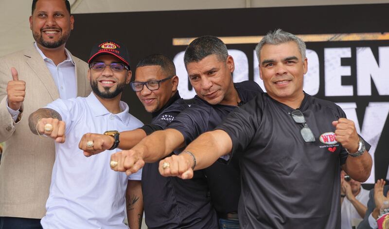 El pugilista puertorriqueño recibió la sortija rodeado de campeones y leyendas del ring, entre ellos el recién exaltado al Salón de la Fama Iván Calderón, el campeón peso ligero Keyshawn Davis, el campeón junior mosca René Santiago, y los excampeones Nelson Dieppa, Alex ‘El Nene’ Sánchez y Alberto Machado.
