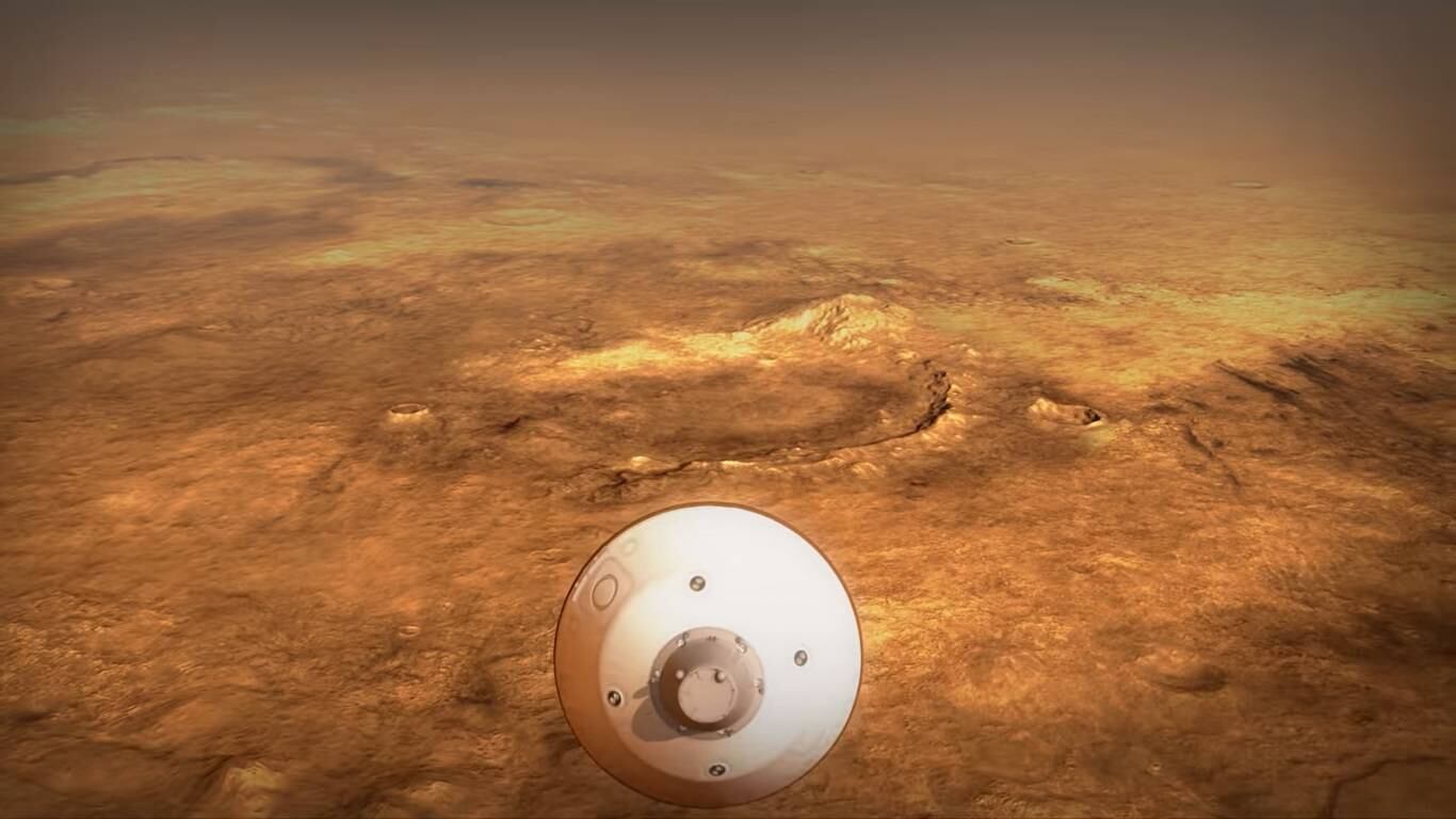 Es específico muestran como será la llegada a órbita de la nave. Asimismo, exponen el ingreso a la atmósfera de Marte. Y como despliega su paracaídas, para después soltar el vehículo que recorrerá el planeta rojo.
