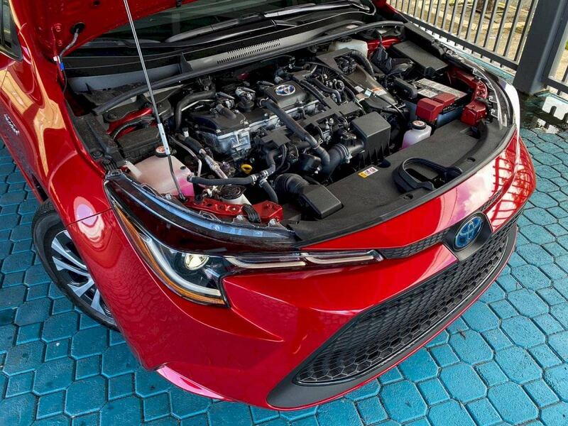 El Corolla Hybrid utiliza todos los componentes principales del Prius, comenzando por la arquitectura global TNGA-C y el tren propulsor “Hybrid Synergy Drive”. El motor de combustión es un 4 cilindros de 1.8 litros, este técnicamente el mismo motor del Corolla básico convencional con la diferencia de que trabaja en el ciclo Atkinson ultra eficiente y utiliza pistones de muy alta compresión. Produce 98 caballos de fuerza por su cuenta se combina con un motor eléctrico de 71 caballos de fuerza para un total de 121 caballos de fuerza y 105 libras-pies de torque. La transmisión es una continua variable electrónica o “eCVT” que funciona de manera distinta a una CVT tradicional e involucra un pequeño motor eléctrico montado entre el motor de gasolina y transmisión.