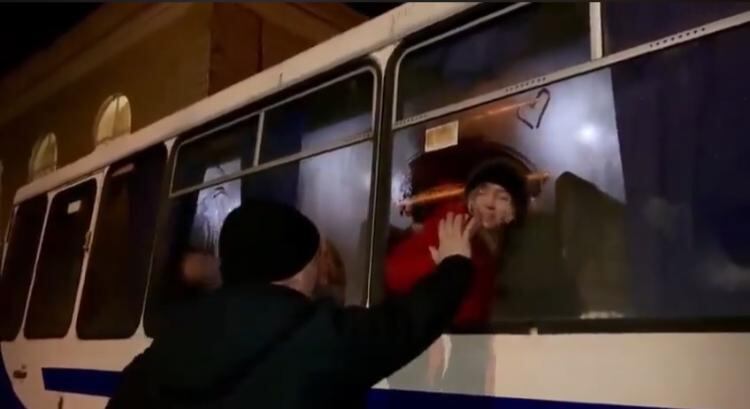Los videos que circulan en redes sociales son desgarradores. Un padre y su hija se despiden a través del cristal del autobús de evacuación de civiles en Kirivkoye, República Popular de Donestk, antes de salir con destino a Rusia.