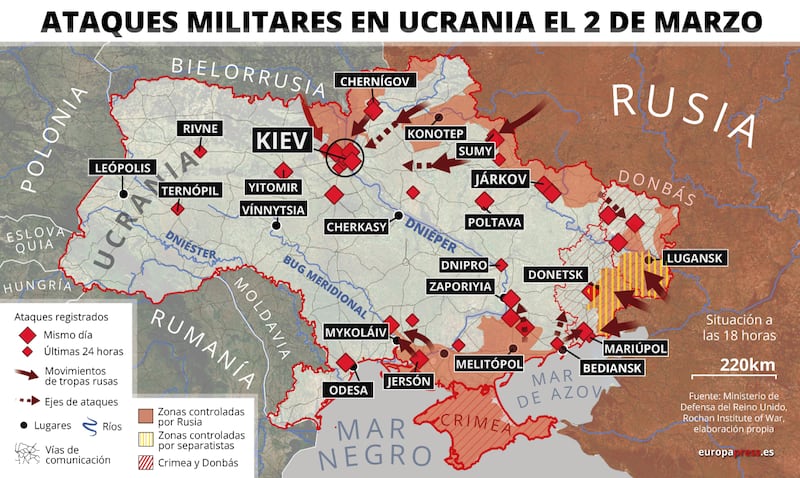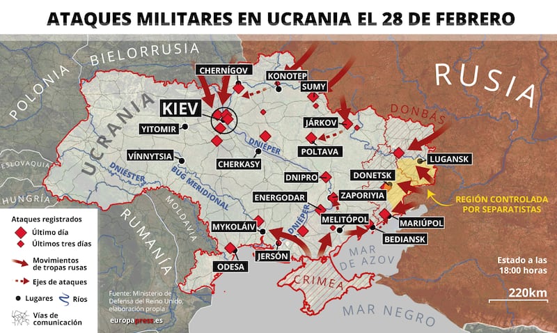 El ejército ruso abrió fuego en territorio ruso la noche del 24 de febrero (tiempo de México), a tres semanas de la invasión rusa a Ucrania las tropas rusas han realizado diferentes movimientos con apoyo del ejército de otros países.