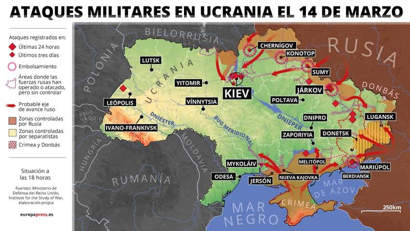 De hecho, más de 3.1 millones de personas han salido de Ucrania en estas dos semanas, con unos dos millones de refugiados en Polonia. Rumanía ronda las 500 mil llegadas, mientras que Moldavia ha recibido a 350 mil personas, Hungría a 282 mil y Eslovaquia a 228 mil, según el Alto Comisionado de la ONU para los Refugiados (ACNUR), que actualiza diariamente los datos.