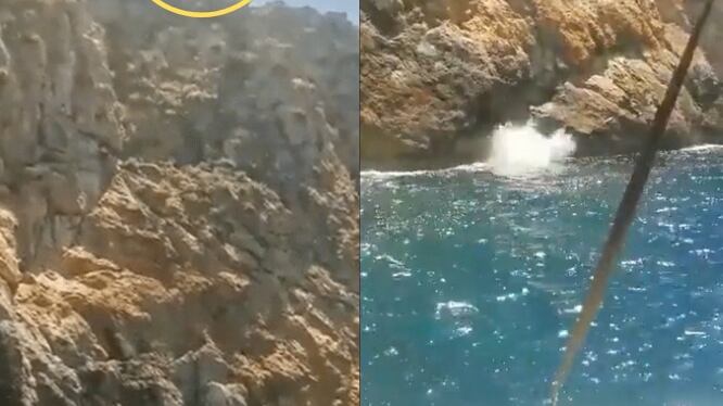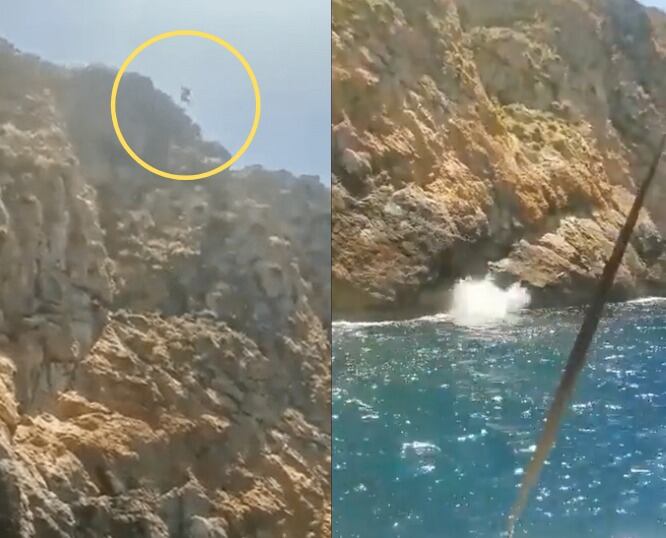 El hombre intentaba caer al agua desde gran altura, sin embargo un error en el cálculo lo hizo estrellarse con una zona rocosa del acantilado.