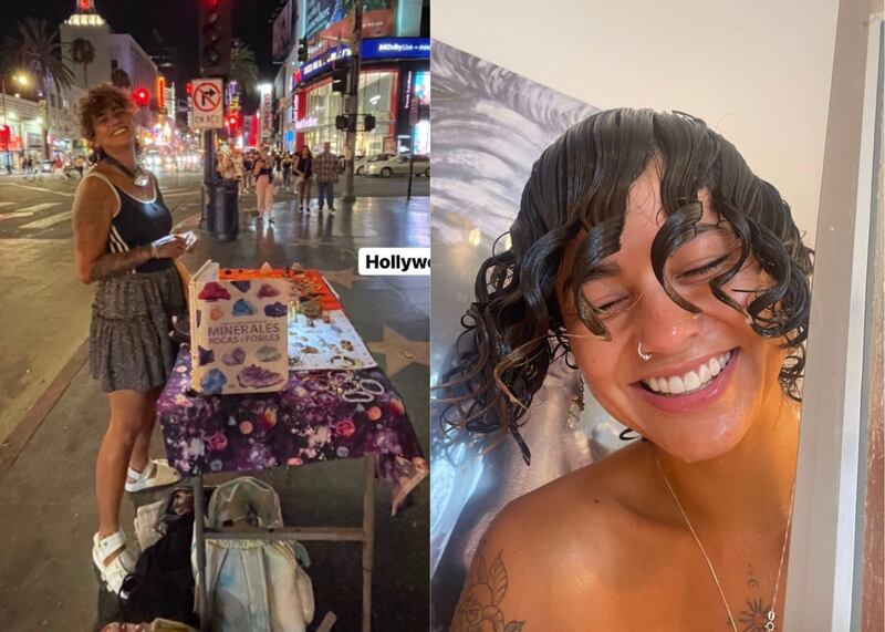 Confirmó que vende piedras en la calle, objetos que trajo desde Chile. Recabarren aparecen en las aceras de Hollywood con un puesto improvisado comerciando este tipo de productos a los turistas.