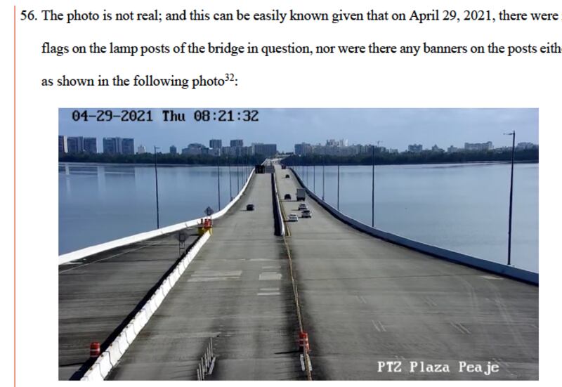Por otro lado, en la moción se presenta otro ejemplo donde en las redes sociales surgió un fotomontaje de un vehículo en el puente Teodoro Moscoso, lugar donde se presume ocurrieron los hechos y donde se aseguraba que eran parte de las cámaras de seguridad en el momento que el exboxeador lanzó el cuerpo al agua.