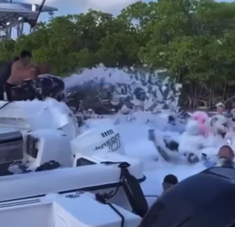 En las imágenes difundidas por la meteoróloga Deborah Martorell, se ven a unos ciudadanos en un “espuma party” lanzando jabón en el lugar que es una reserva natural y hábitat de manatíes. Además de la gran cantidad de personas, también se perciben varias embarcaciones que inundan el lugar.