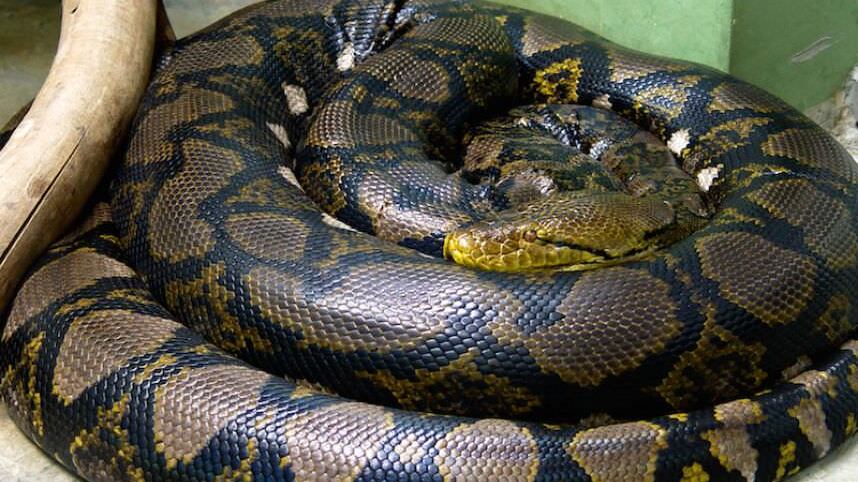 La pitón reticulada (Mayalopython reticulatus)— oriunda de Asia— es la serpiente más grande que se conoce. Tiene una cabeza alargada, hocico ancho y una boca grande con casi un centenar de dientes. Sus ojos son color amarillo anaranjado y tienen una pupila negra brillante. El cuerpo es robusto, fuerte y elástico. Tiende a tener unas tonalidades entre amarillo, negro y crema.