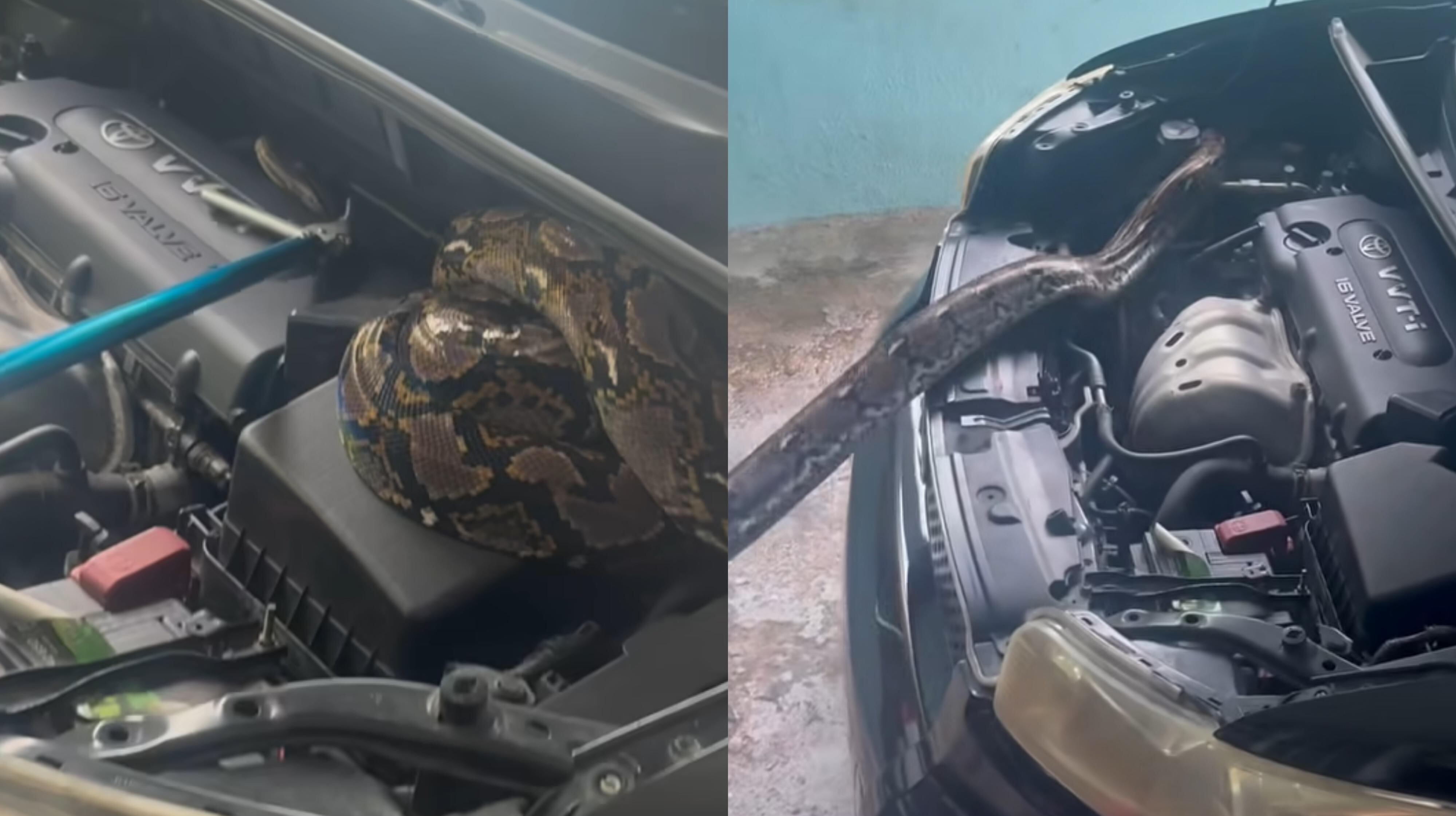 Según contó el conocido cazador de animales invasores, una joven natural de Bayamón fue a verificar el aceite de su carro y, al abrir el bonete, se topó con una pitón reticulada enroscada en el área del motor.