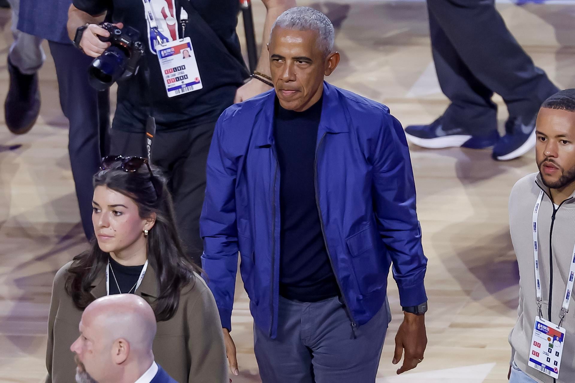 El expresidente de EE.UU., Barack Obama, en el juego de las estrellas de la NBA, el 15 de febrero de 2026. EFE/CHRIS TORRES