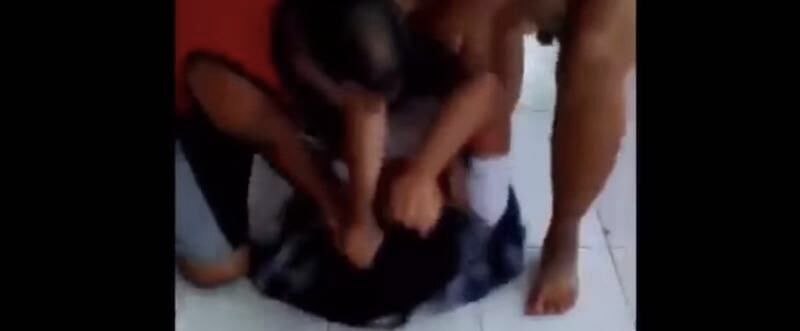 Luego de una confusa escaramuza, vemos a la joven en el piso, con el tipo agarrándola por el pelo, mientras esta grita y solloza: “¡Suéltame, suéltame!”.