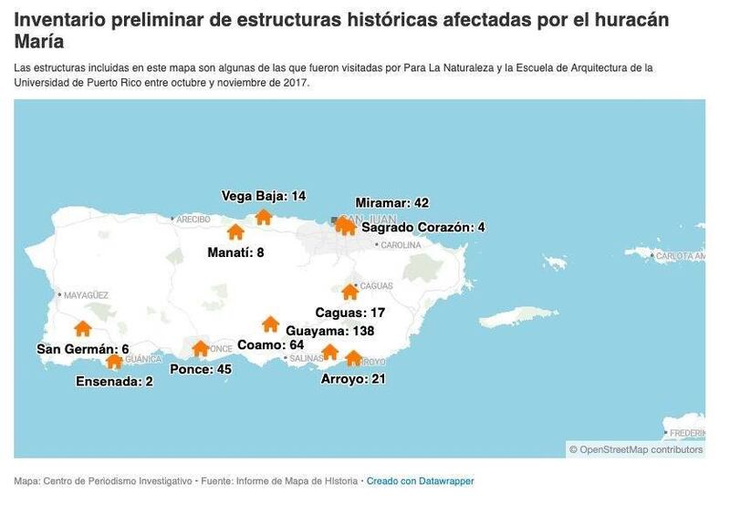 El huracán María afectó 361 de las 4,755 estructuras históricas inspeccionadas, de acuerdo con un inventario de daños tras el ciclón realizado por la organización Para la Naturaleza junto a un grupo de estudiantes voluntarios de la Escuela de Arquitectura de la Universidad de Puerto Rico.
