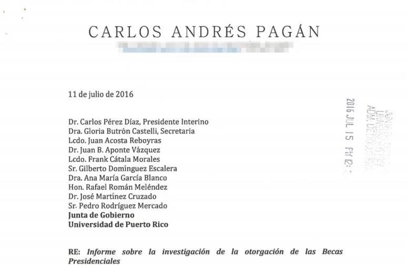 La beca de Pagán Cuebas forma parte de un trío que fue investigado por la Comisión, y que terminó costándole el puesto a la alta gerencia de la Universidad de Puerto Rico por sus vínculos con el hermano del gobernador y ex Presidente de la Universidad Antonio García Padilla.