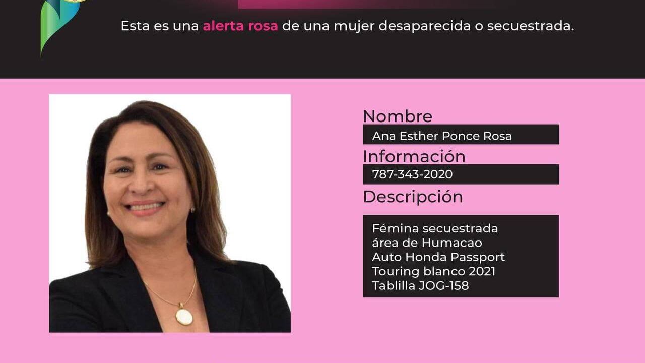 Temprano esta mañana, se había reportado que Ponce Rosa, una legisladora del municipio de Humacao por el Movimiento Victoria Ciudadana (MVC), fue llevada a la fuerza en un Honda Passport Touring Blanco del 2021, con tablilla JOG-158.