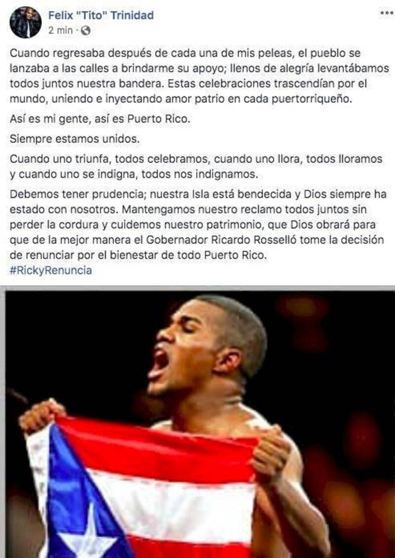Tito se subió al ring de Facebook, se cuadró como pa’ los tiempos de darle pasta y queso a Fernando Vargas y le pegó un gancho al hígado de la conciencia al hijo de Pedro.