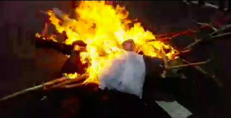 Durante la manifestación en la Milla de Oro – convocada por el colectivo Jornada: Se acabaron las Promesas – varios maniquíes que representaban a presuntas figuras de autoridad fueron prendidos en fuego frente a las oficinas de la Junta de Control Fiscal.