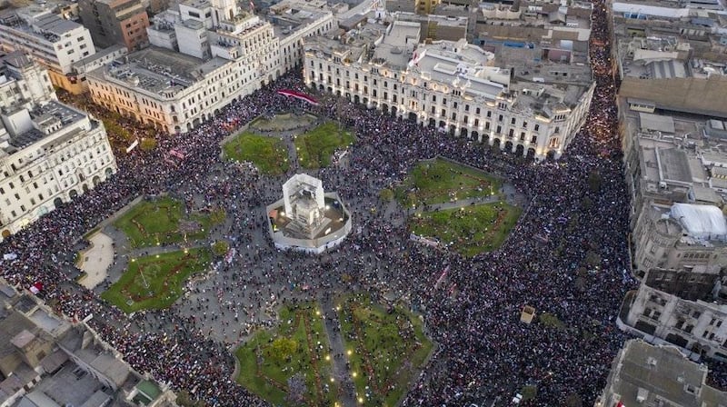 Perú estaba hundido el domingo en su peor crisis política de 20 años en medio de presiones que exigían la renuncia del presidente tras protestas que dejaron dos muertos y casi 100 heridos.