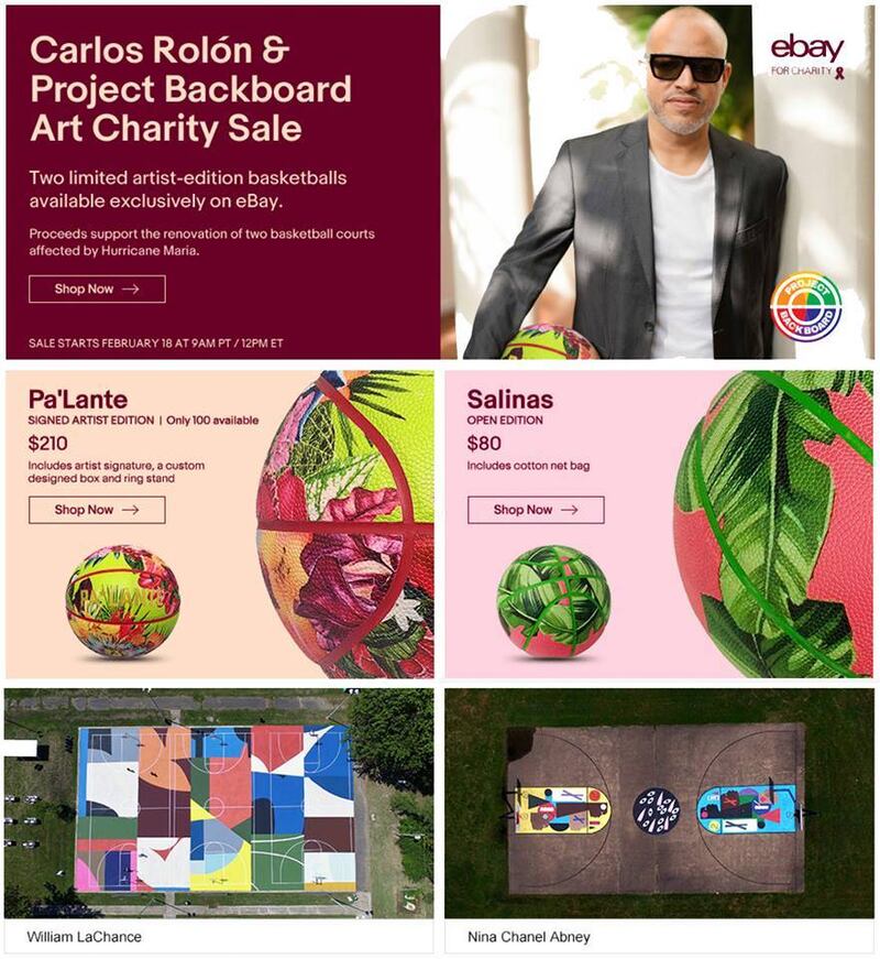 “The design on the ‘Pa’Lante’ basketball is drawn from a new body of work created for my solo exhibition at the New Orleans Museum of Art, featuring paintings that pay homage to my Puerto Rican heritage,” said artist Carlos Rolón. “It’s a nice collector’s item, and will help support Project Backboard through this eBay for Charity sale.”