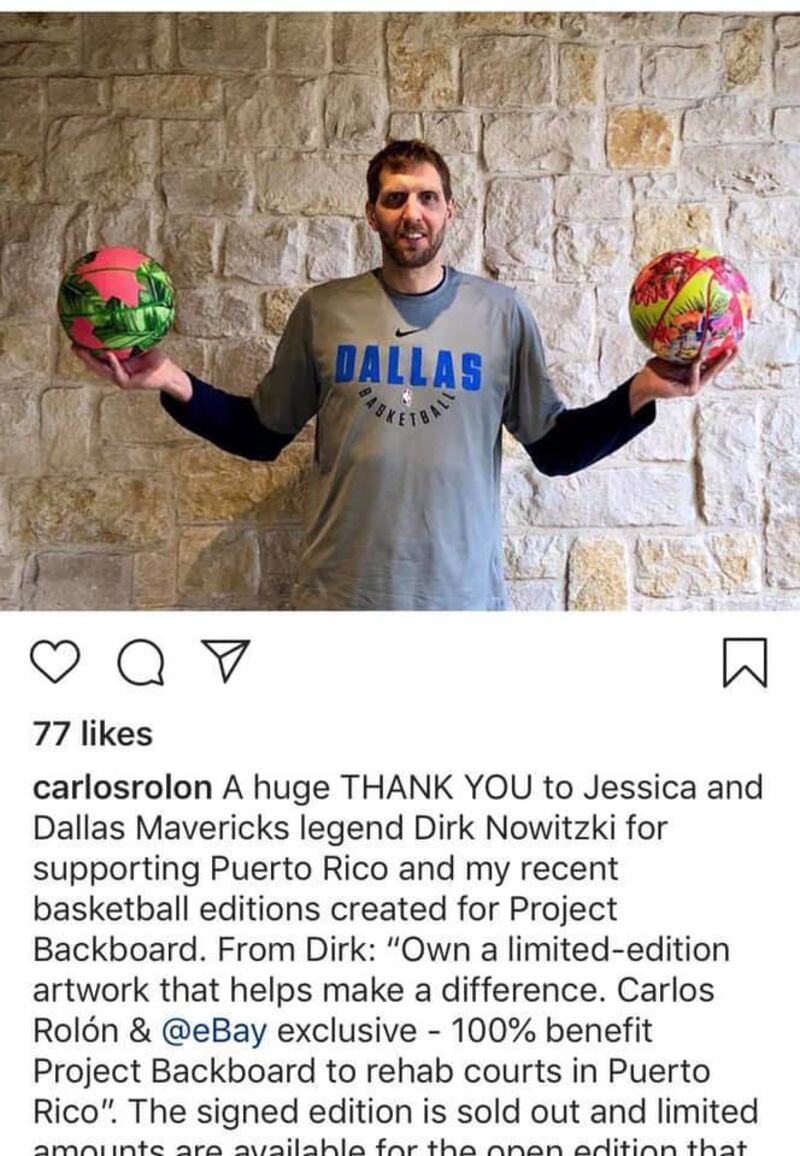 Las mismas se pueden conseguir a través de eBay (ebay.com/carlosrolon) y todos los fondos recaudados serán para remodelar y mejorar canchas públicas al aire libre y colaborar con artistas que quieran crear espacios únicos para jugar, incluyendo renovaciones en canchas en San Juan que hayn sido afectadas por el paso del huracán María.