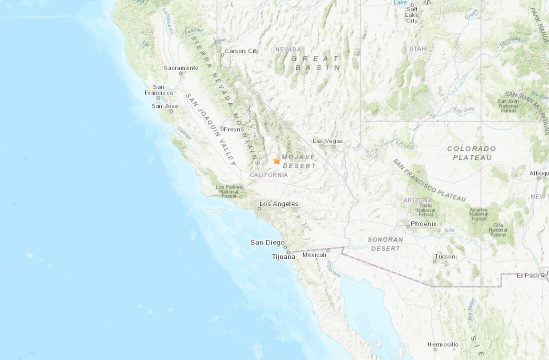 El terremoto tuvo su epicentro a 12 kilómetros al suroeste de Searles Valley, en California. Entre las principales ciudades que reportaron haberlo sentido están Los Ángeles y Bakersfield. Tuvo una profundidad de 8.7 kilómetros y no se reportan heridos.