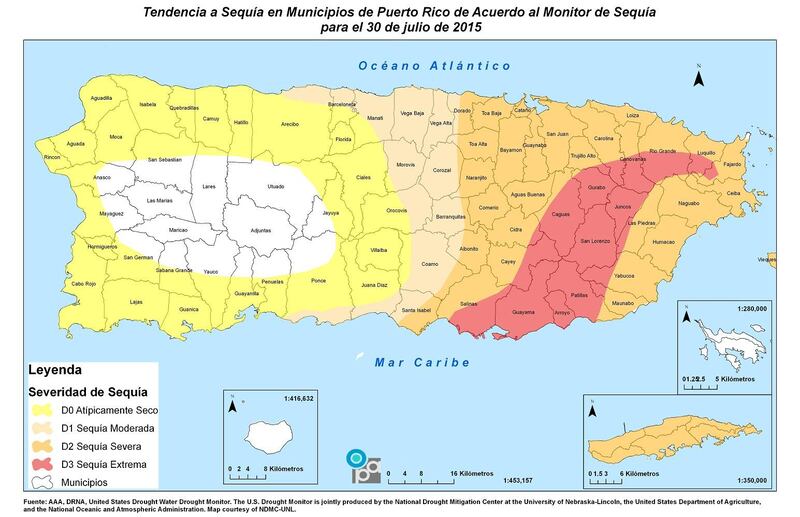 Culebra, Adjuntas, Las Marías y Maricao son los únicos municipios que están fuera de las clasificaciones de sequía.