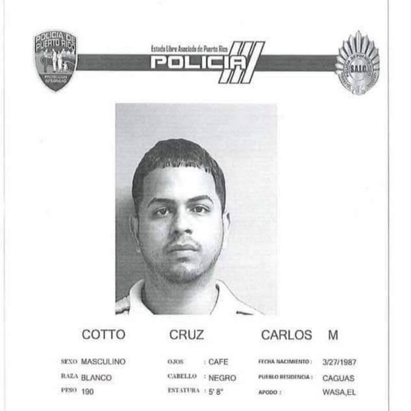 Las autoridades siguen el rastro de Carlos Cotto Cruz, principal sospechoso del asesinato de tres policías. La Policía solicitó la cooperación de la ciudadanía para encontrar esta persona. De tener alguna información puede comunicarse, confidencialmente, con el 787-343-2020.