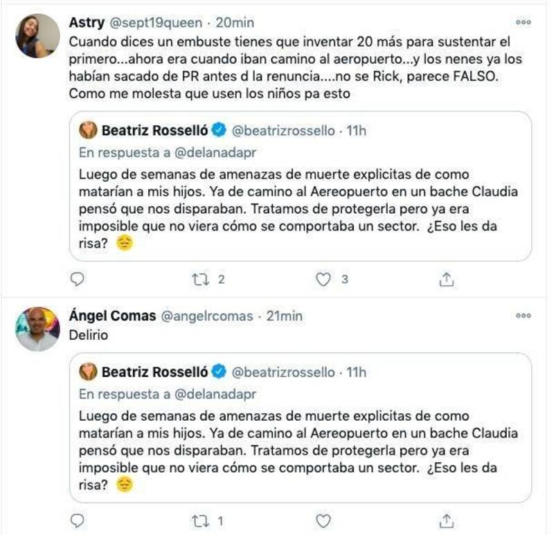 De hecho, lo que dice Bea ahora es más confuso aún, pues se había informado que los hijos de los Rosselló habían abandonado el país dos semanas antes que sus padres, en ruta a Virginia, con sus abuelos, por lo que no se ha especificado si el boquete asustador apareció en el trayecto al aeropuerto.