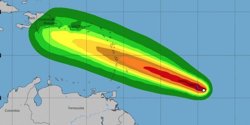 De acuerdo con los últimos boletines, Beryl perdería fuerza en su paso por las Antillas Menores y afectaría a Puerto Rico como una fuerte tormenta tropical el lunes, 9 de julio, entre 8:00 y 11:00 de la mañana.