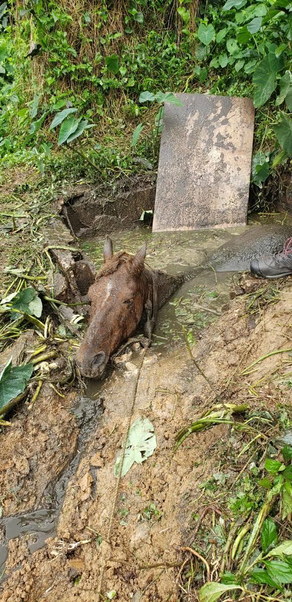 La Policía informó que recibió una llamada de alerta de la Oficina de Manejo de Emergencias, control de animales área de Caguas, que en el Bo. Tomas de castro I, sector los Cotto de un equino que cayó dentro de un pozo séptico, estos hechos ocurrieron el jueves 14 de febrero en horas de la tarde. El agente Daniel Horta, coordinador de la ley 154 (Protección y Bienestar de los Animales) en colaboración con el personal de Manejo de Emergencias de Obras Publicas de Caguas, y del Albergue Horse & Pony, a eso de las 12:00 del mediodía de hoy se logró rescatar al equino de esas aguas negras. Se informó que al animal se limpió, y fue llevado al veterinario, luego sería transportado al albergue de equinos. El caso sería investigado para saber si hubo alguna negligencia en este incidente.