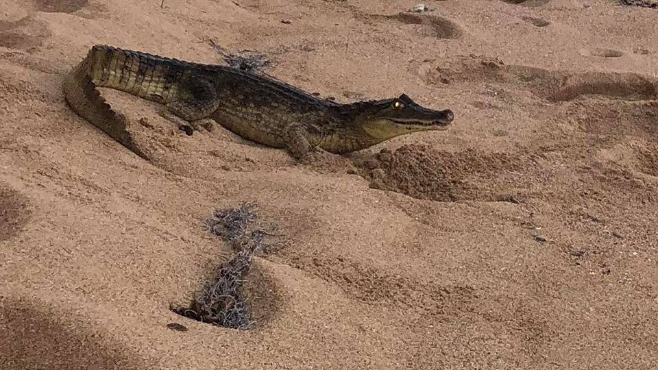 Según se indicó en el post de la red social azul y blanca, el caimán había salido de las aguas de la playa de Breñas.