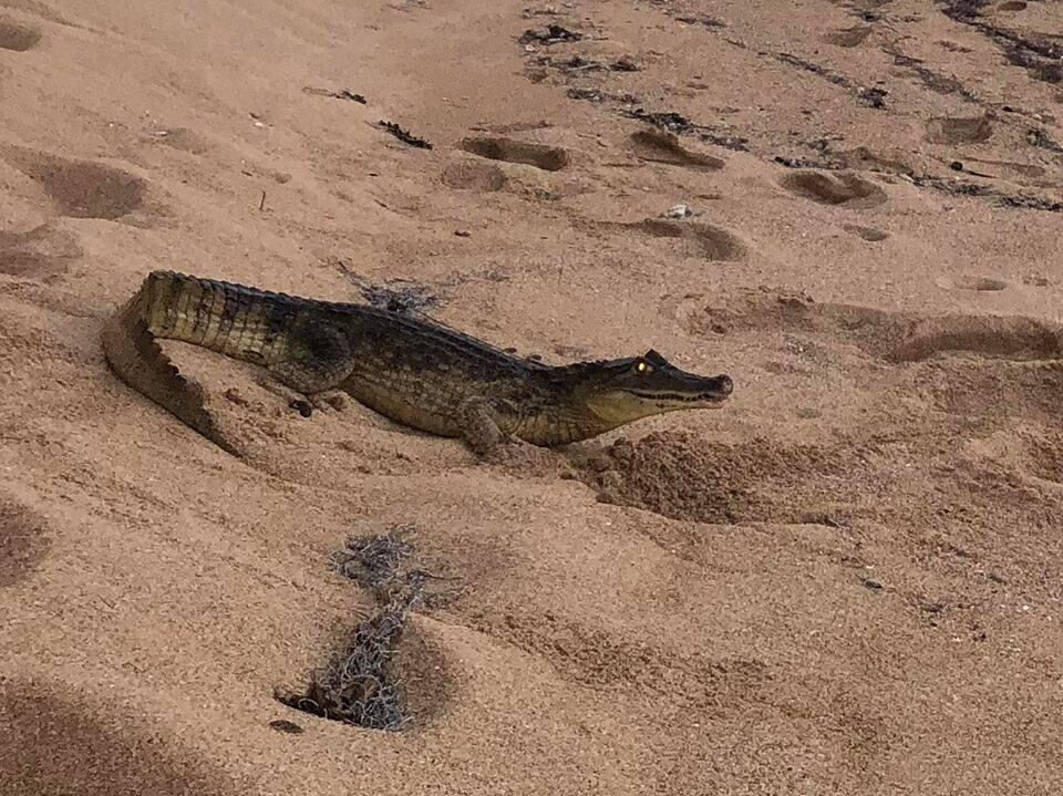 Según se indicó en el post de la red social azul y blanca, el caimán había salido de las aguas de la playa de Breñas.