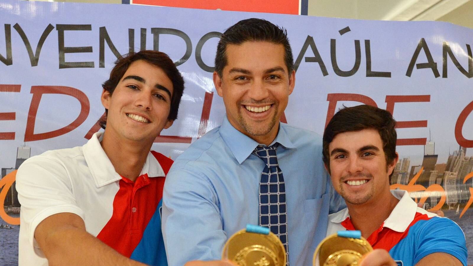 Los únicos medallistas de oro de la delegación puertorriqueña de la justa hemisférica fueron recibidos con mucho entusiasmo por el presidente de la Federación de Vela de Puerto Rico, Raúl Ríos, padre, y el secretario del Departamento de Recreación y Deportes (DRD), Ramón Orta.