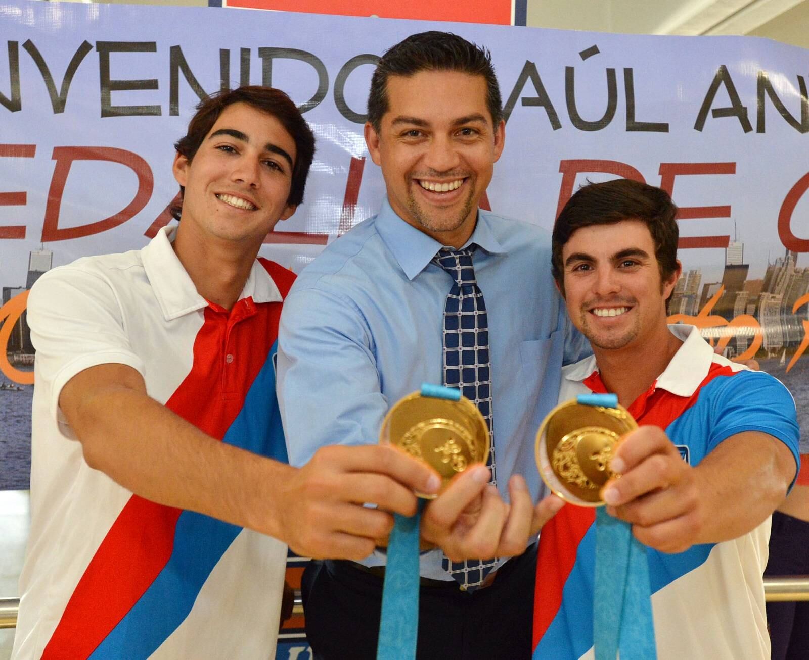 Los únicos medallistas de oro de la delegación puertorriqueña de la justa hemisférica fueron recibidos con mucho entusiasmo por el presidente de la Federación de Vela de Puerto Rico, Raúl Ríos, padre, y el secretario del Departamento de Recreación y Deportes (DRD), Ramón Orta.