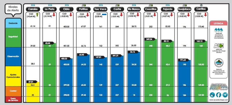 Según el informe matutino de la AAA, Carraízo aumentó de nivel de control a “ajuste operacional”, tras recibir un aumento de 64 centímetros, con lo que llegó al nivel reportado el lunes pasado.
