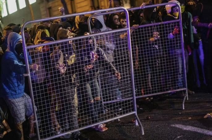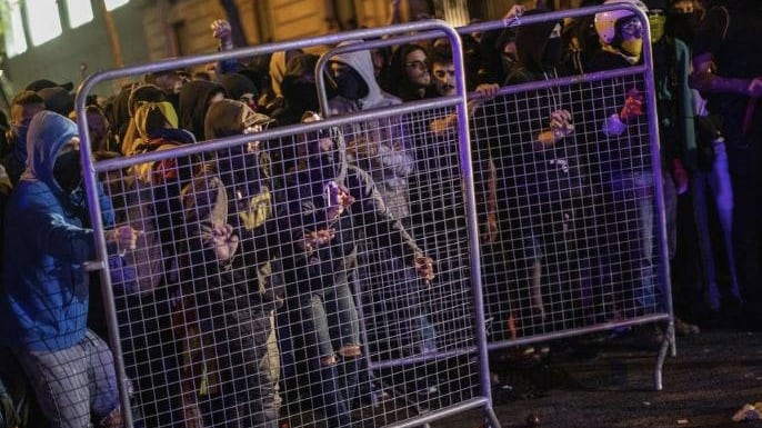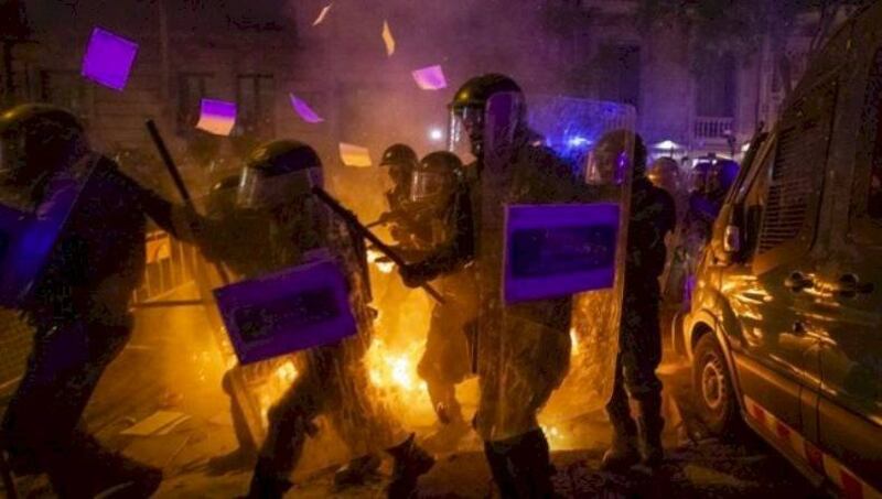 Las protestas pacíficas del martes se volvieron agresivas en Barcelona y otras localidades. La policía barcelonesa estimó que unas 40.000 personas abarrotaron las calles cerca de la Delegación de Gobierno de España, donde hubo choques entre policía y manifestantes cuando la gente retiró las barreras metálicas y lanzó objetos a la policía.