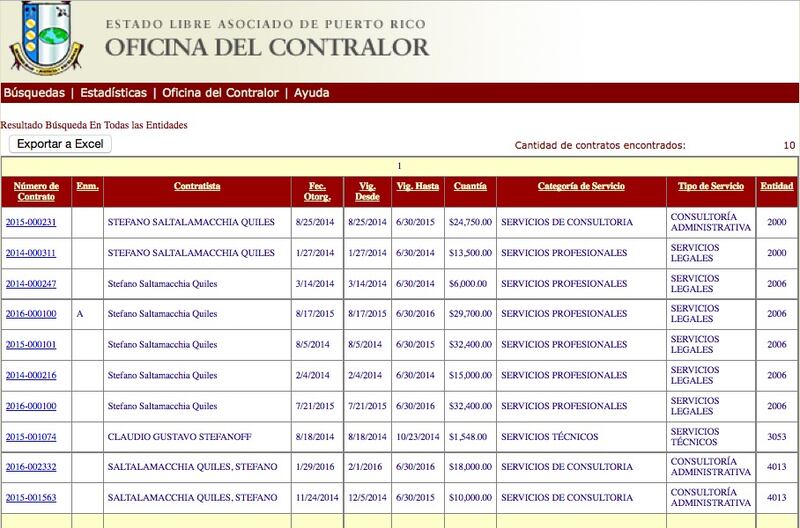 El primero de ellos es Stefano Saltalamacchia Quiles. Según la resolución, el joven es residente de Caguas. Al momento que la legislación fue aprobada y puesta en vigor, este contaba con contratos registrados en la oficina del Contralor para laborar como asesor en la Cámara de Representantes y en el Senado de Puerto Rico. En total, en lo que va de cuatrienio, Saltalamacchia ha logrado $181,750 en contratos para asesoría legislativa, administrativa y legal que provienen del Senado de Puerto Rico, la Cámara de Representantes y el Municipio de Caguas.