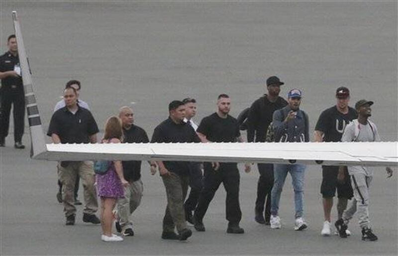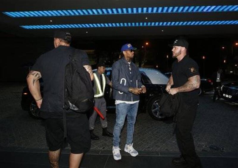 En el aeropuerto Brown y otras personas se podían ver caminando hacia un avión privado. Antes de abordar, el cantante invitó a los filipinos a que lo acompañaran a una fiesta en Macao.