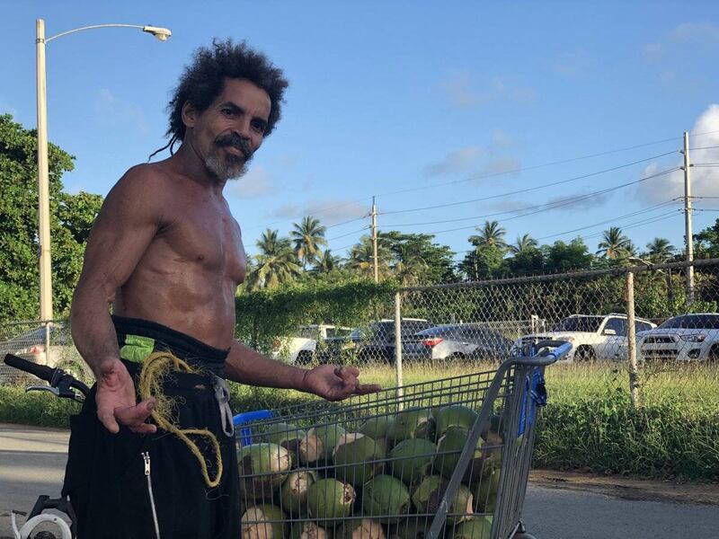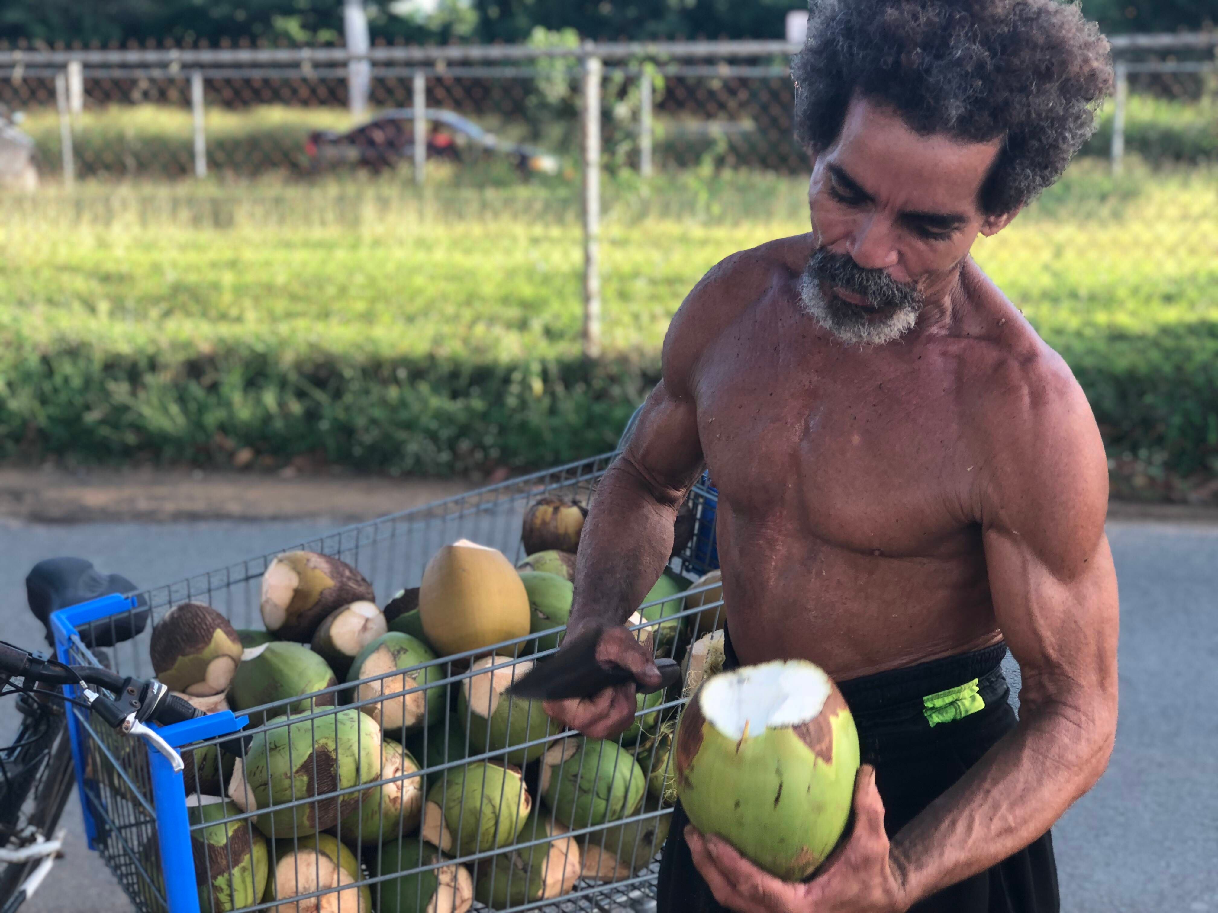 En Luquillo todo el mundo conoce a Carlos como el “Coquero Number One”. Es muy probable que lo veas en bicicleta de arriba a abajo por la “número 3” y arrastrando un carrito de compras lleno de cocos listos pa’ la venta o pa’ regalar.
