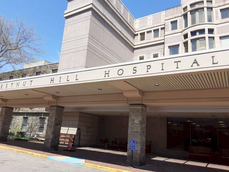 La señora Pérez Rodríguez fue internada en el Chestnut Hill Hospital, arriba.
