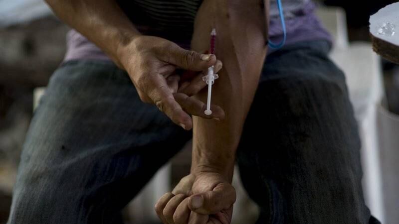En Humacao, al sudeste, un grupo de adictos a la heroína y la cocaína se reunieron recientemente en torno a una mesa de plástico en una casa abandonada y se inyectaron entre sí. Uno de ellos se puso un dedo en la boca y sopló hacia afuera, haciendo que se agrandase la vena del cuello para poder inyectarse. En la mesa había decenas de agujas sucias, pequeñas botellas de agua y calentadores (cookers.)