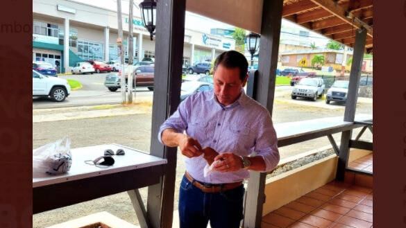 Fue al oeste a visitar varios comercios locales, como la fábrica de dulces Encanto Boricua, donde degustó el suculento Bombotó y aprovechó pa; sacar de su quincaya media libra de café pa regalar, aún cuando está escasos luego de que Denis Márquez se bajara siete tazas anoche pa’ no dormirse guiando tras la jartera de sancocho con arroz con tocino que se había dao. Además, resulta que visitó una destilería. Nada más con el testigo.
