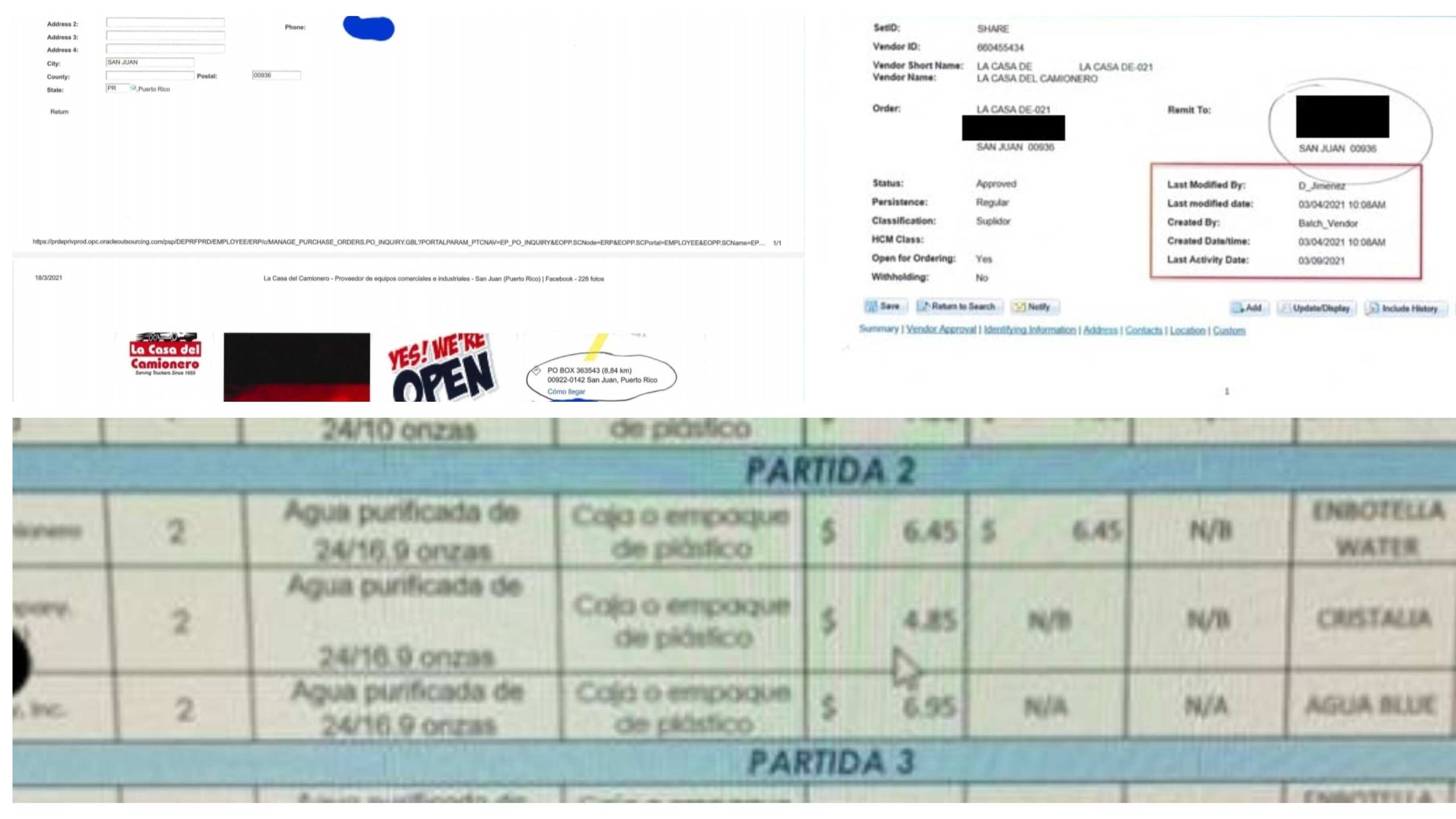 Según documentos mostrados por Molina en sus redes sociales, el Departamento de Educación compró MÁS DE UN MILLÓN DE DÓLARES en botellitas de agua de 16.9 onzas vía subasta a la tienda de mecánica La Casa del Camionero.