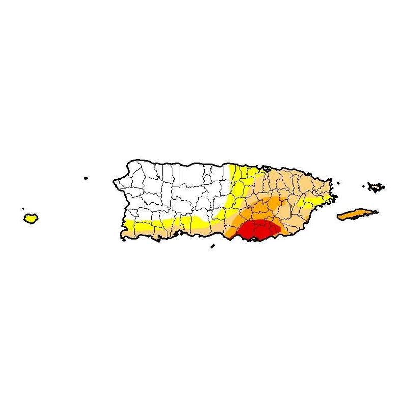 La funcionariaa también informó que de acuerdo al más reciente informe publicado hoy, el Monitor de Sequía federal mantiene bajo alguna de las clasificaciones de sequía al 59 por ciento de Puerto Rico y seis pueblos continúan en sequía extrema o un 4.92 por ciento de la isla: Arroyo, Cayey, Guayama, Patillas, Salinas y Santa Isabel.