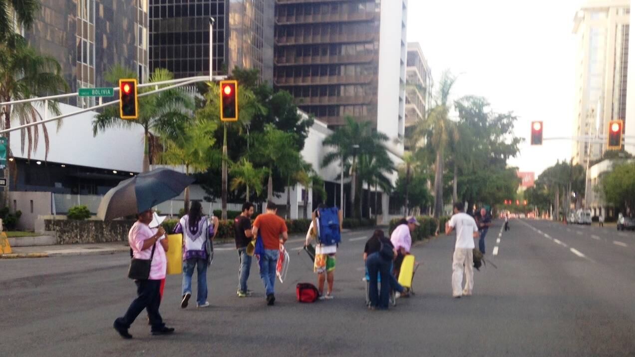 Una decena de personas acudió al llamado a un acto de desobediencia civil llamado por organizaciones e individuos para protestar sobre el pago de la deuda y que se efectuó esta madrugada en la avenida Muñoz Rivera, sector La Milla de Oro.