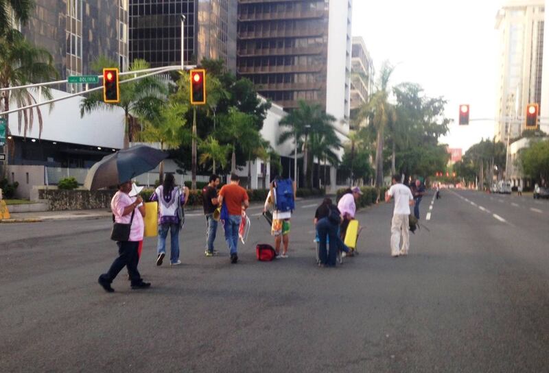 Una decena de personas acudió al llamado a un acto de desobediencia civil llamado por organizaciones e individuos para protestar sobre el pago de la deuda y que se efectuó esta madrugada en la avenida Muñoz Rivera, sector La Milla de Oro.