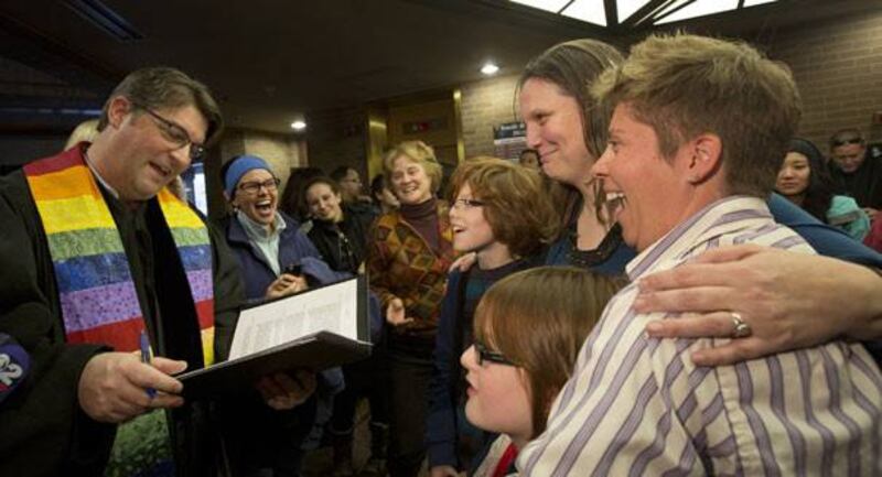 El 65% de los demócratas y apenas el 22% de los republicanos aceptaron la legalización del casamiento homosexual en su estado y el 72% de los republicanos y el 31% de los demócratas opinaron que los funcionarios locales con objeciones religiosas deberían estar exentos de emitir licencias matrimoniales a parejas gay.
