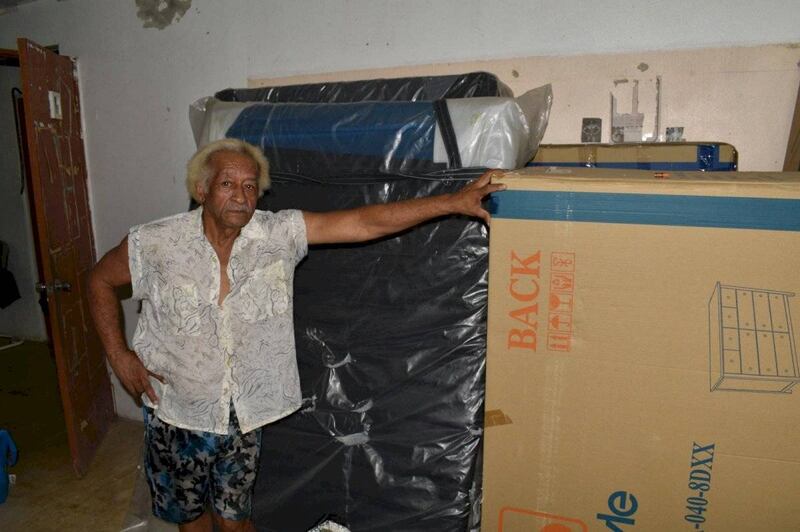 Lo primero que uno ve al entrar a la casa es una nevera nueva, de paquete, que, según Fermín, lleva varios meses en la caja. El hombre, que asegura no recibir apoyo de su familia, al sol de hoy todavía no cuenta con su Seguro Social, por un aparente robo de identidad. Fermín dice que la nevera se la dio FEMA y que unos norteamericanos se encargaron de la infraestructura.