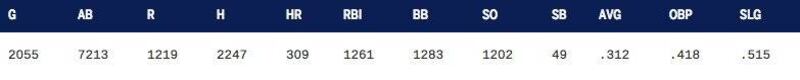- Es uno de diez leyendas en la historia de las Grades Ligas con más de 300 jonrones, 500 dobletes, 1,000 boletos gratis, sobre .300 de promedio de bateo y con promedio de llegar a base por encima de .400.