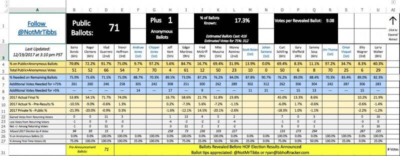 Los resultados de la votación serán anunciados el miércoles 24 de enero por el presidente del Salón de la Fama, Jeff Idelson.
